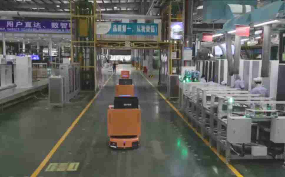 为车载冰箱物流配送打造的智能解决方案,,,,包含产中物流通过潜伏举升AMR搬运至线边,,,产后成品物流智能仓储,,,,流程包含产中物流智能齐套入库,,线边安灯叫料AMR智能配送至线边,,,成品入库、、、出库,,通过无人堆高车机器人,,,,智能仓储管理替代人工作业管理,,,,实现更高存储、、、、更高效率、、、、更具柔性化的解决方案。。。